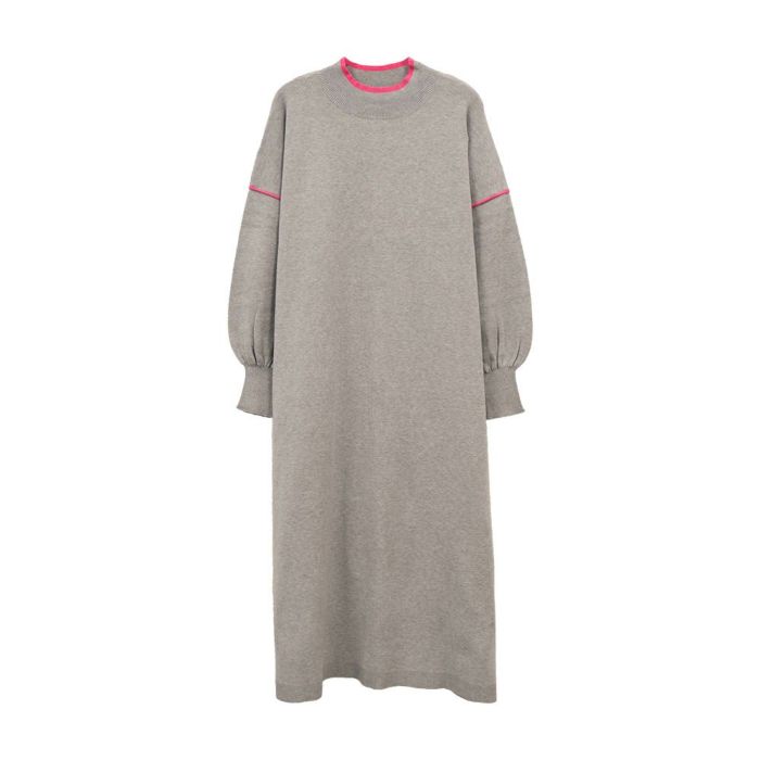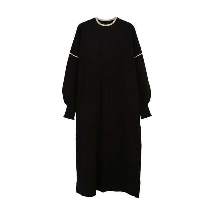 • ゆるっとシルエットのミラノリブ配色ロングワンピース。