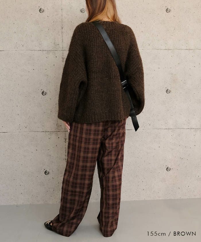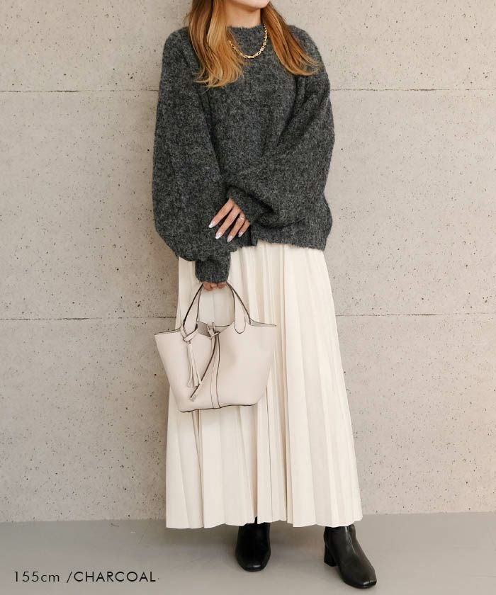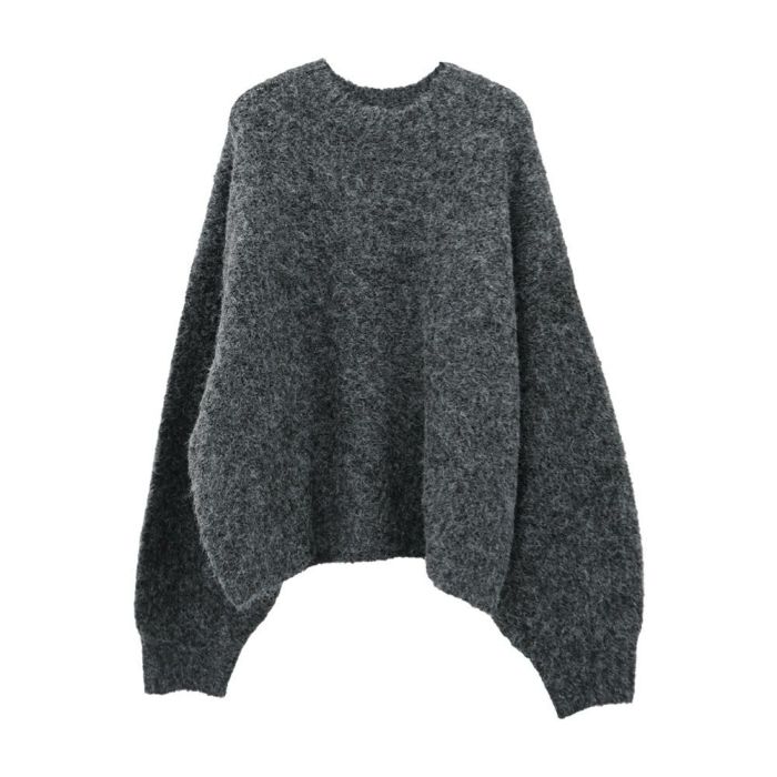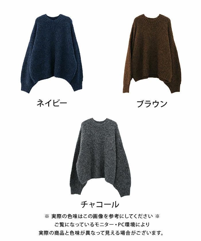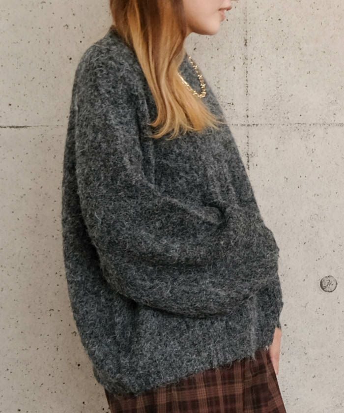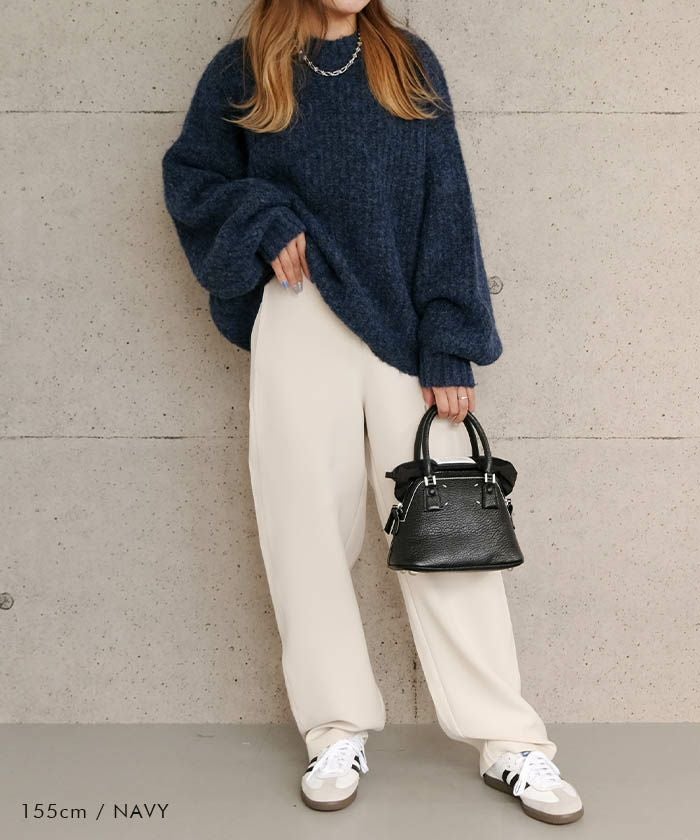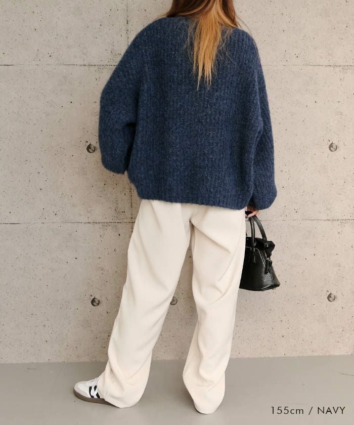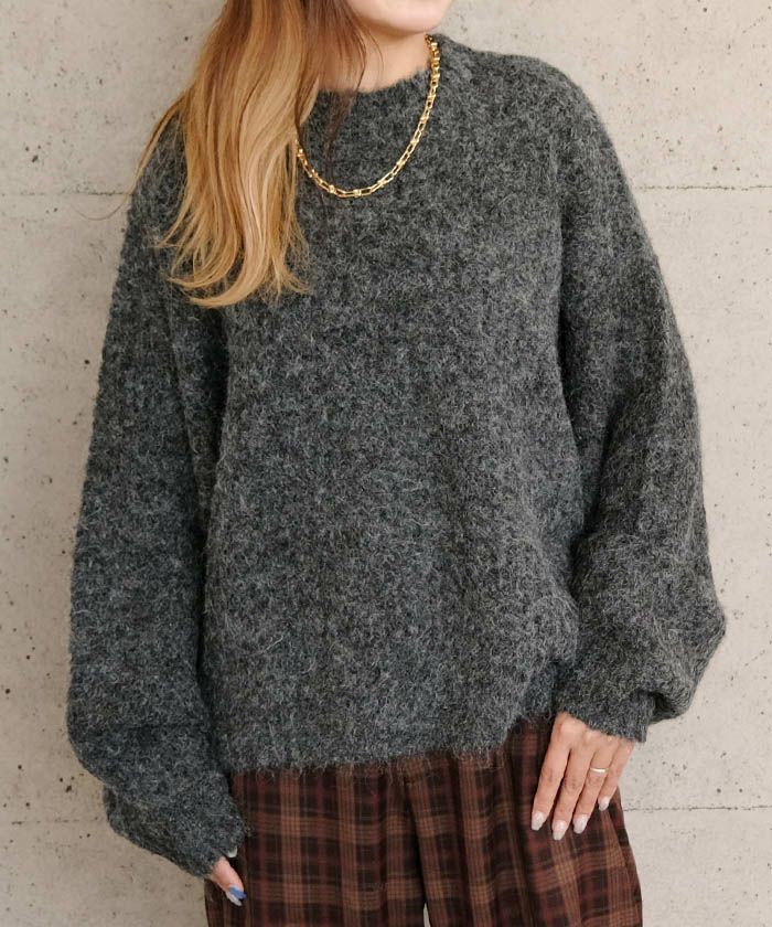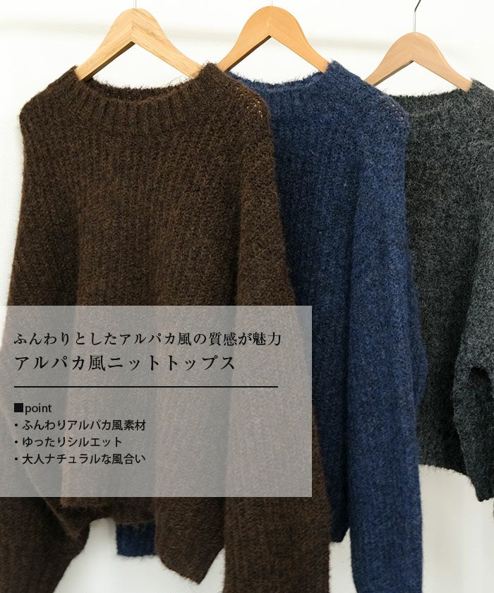 ふんわりとしたアルパカ風の質感が魅力のニットトップス。