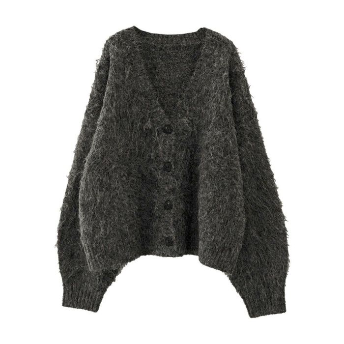 ふわふわ質感のシャギーがアクセントになり、シンプルな着こなしも一気に華やかに仕上げてくれる主役級カーディガンです。