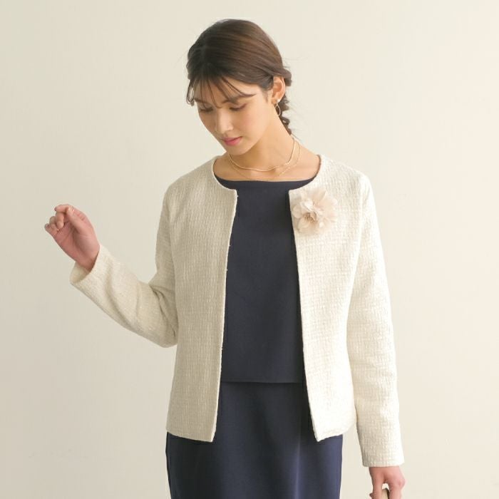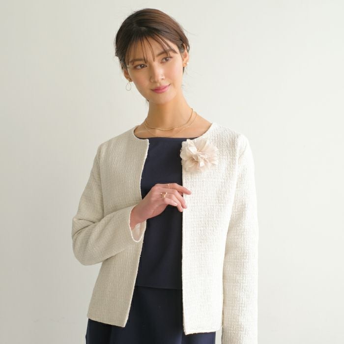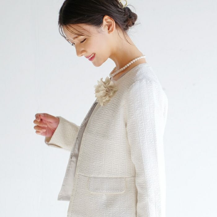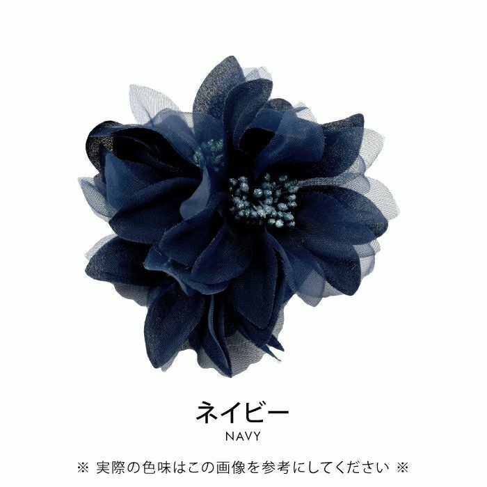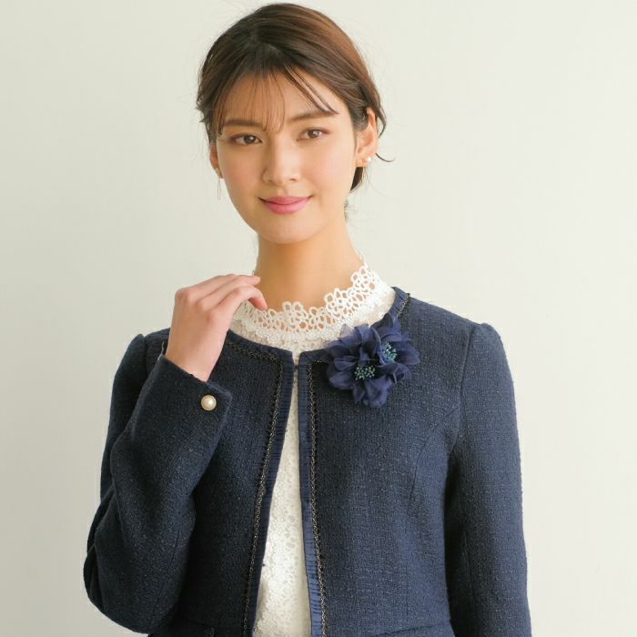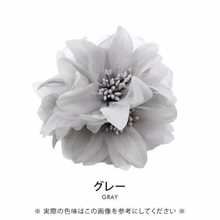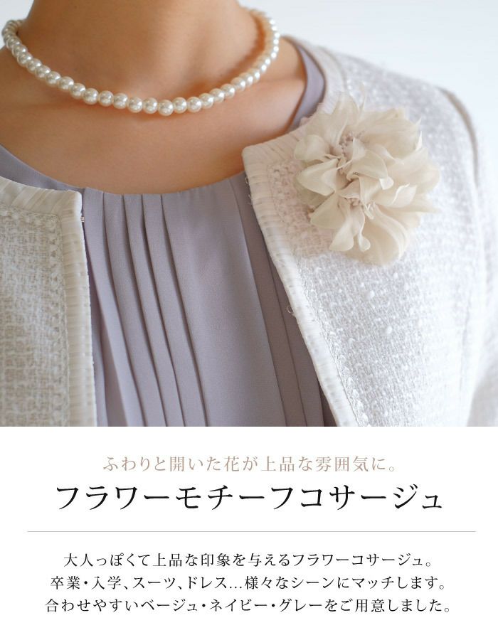 • 大人っぽくて上品な印象を与えるフラワーコサージュ。