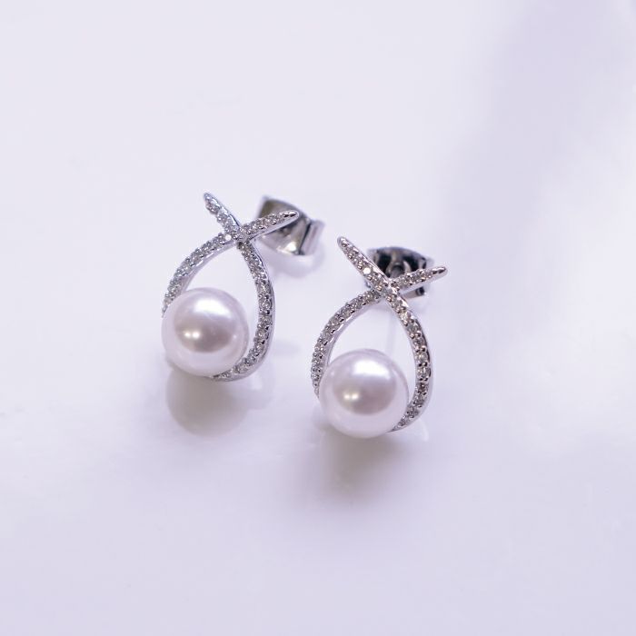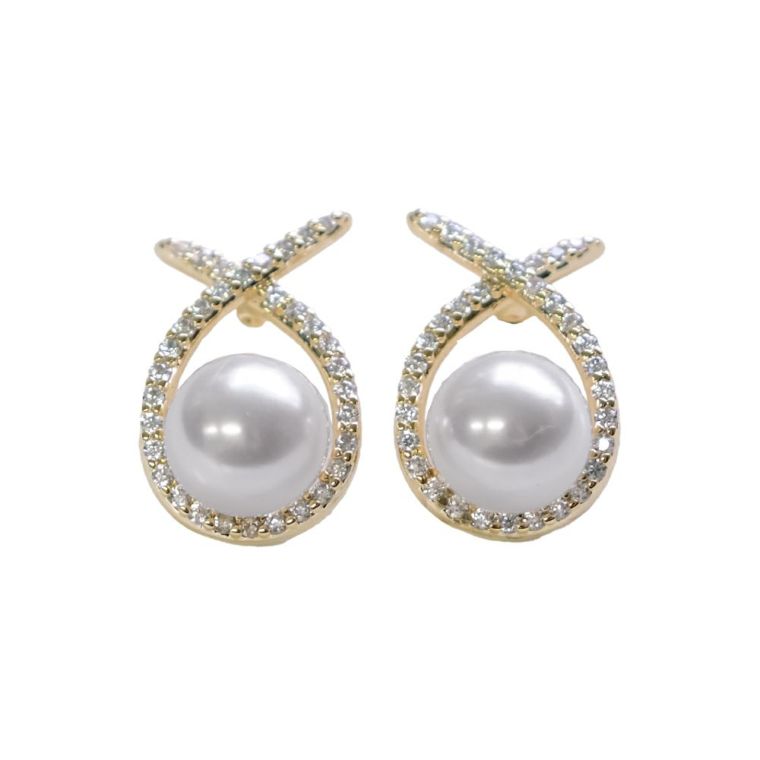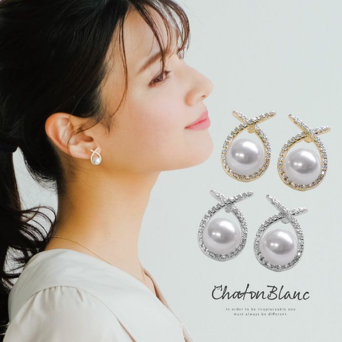 ビジューを敷き詰めたノットモチーフにパールを添えたピアス。 小ぶりなパールが女性らしい印象を与えてくれます。 きれいめだから、デイリーからお呼ばれまで幅広く活躍します。