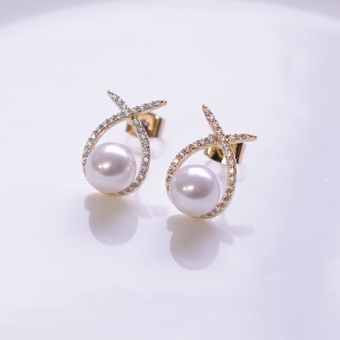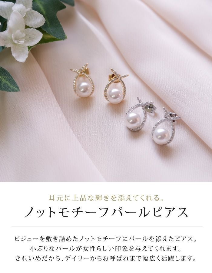 • 耳元に上品な輝きを添えてくれる。 ノットモチーフパールピアス