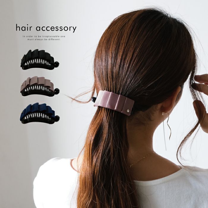 • 多い髪でもしっかり留まる!リボンを重ねたデザインがオシャレなリボンティースクリップ。