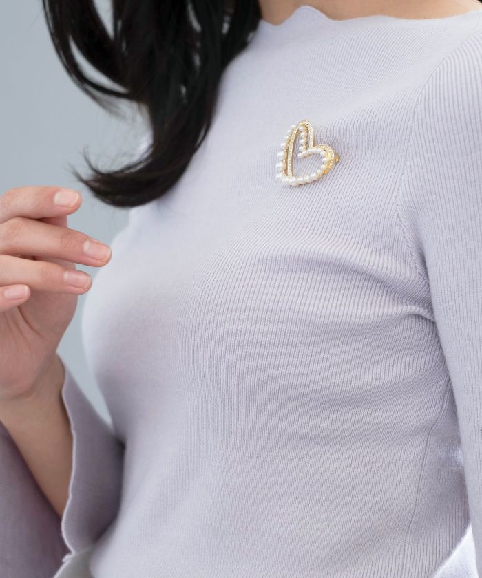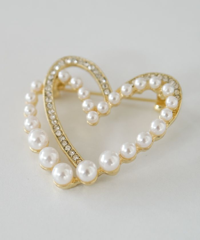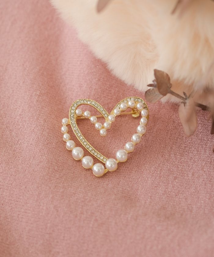 • 重なった2つのハートが華やかなパールハートブローチ