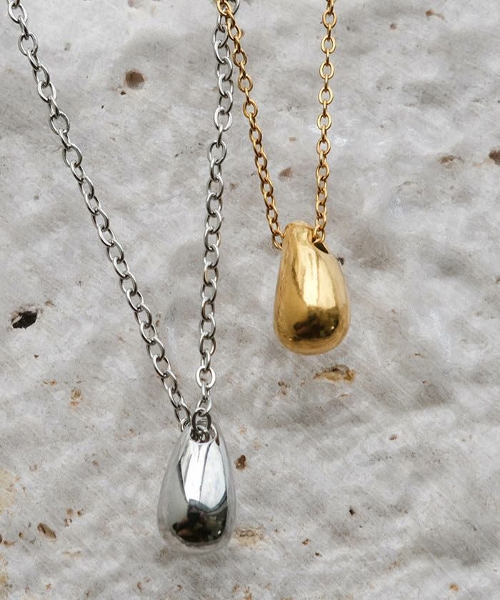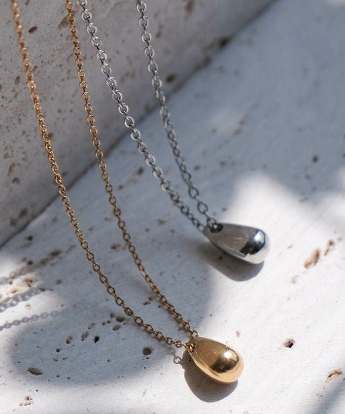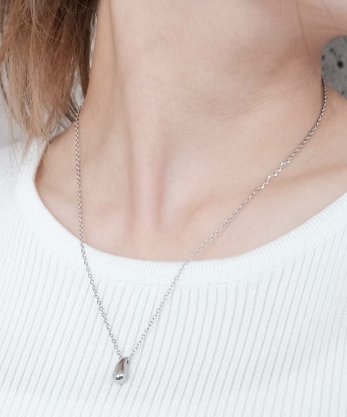 • コロンとした艶のあるドロップモチーフがシンプルでお洒落なネックレス 素材は金属アレルギーを起こしにくいサージカルステンレスを使用しており、金属アレルギーの方でも安心してご利用いただけます。