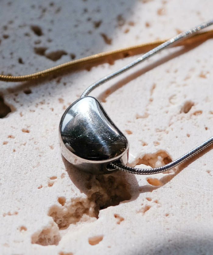 • ぷっくりとしたビーンズ型のメタルモチーフが可愛く、シンプルで大人っぽいネックレスです。