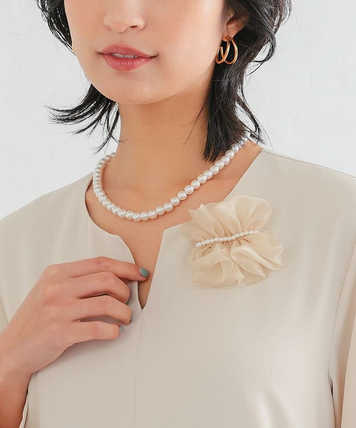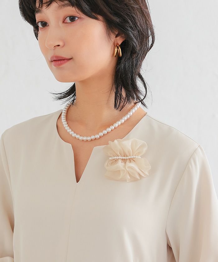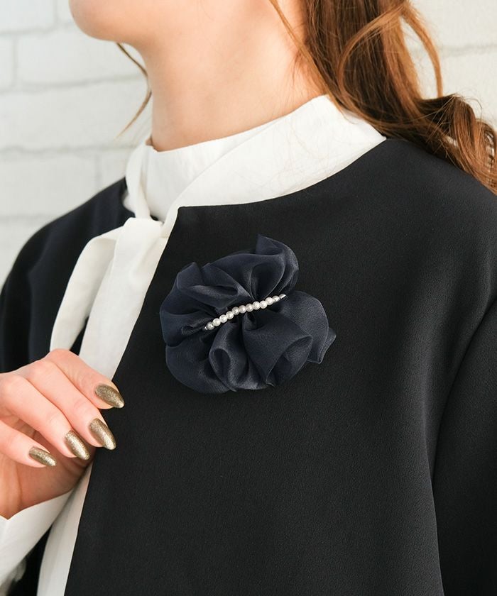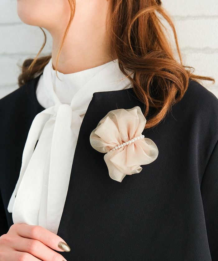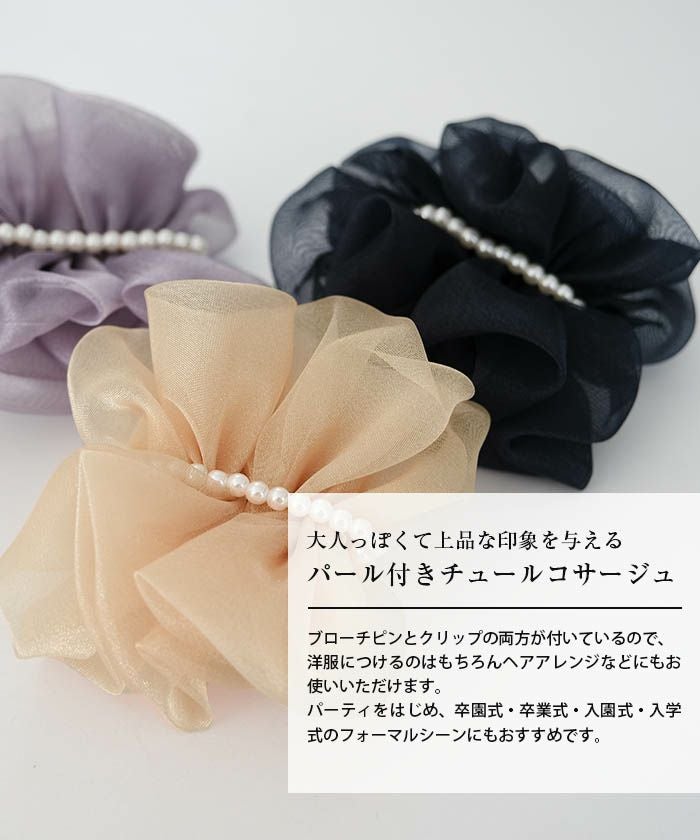 • 大人っぽくて上品な印象を与えるパール付きチュールコサージュ