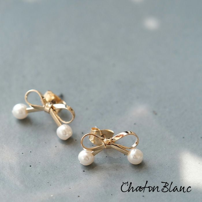 送料無料 パール付きリボンピアス レディース ≪ゆうメール便配送20・代引不可≫ | アクアガレージ aquagarage