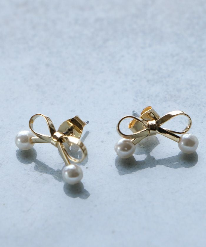 小ぶりなリボンに一粒のパールをあしらった、上品さと可愛らしさを両立するデザイン。