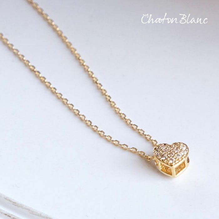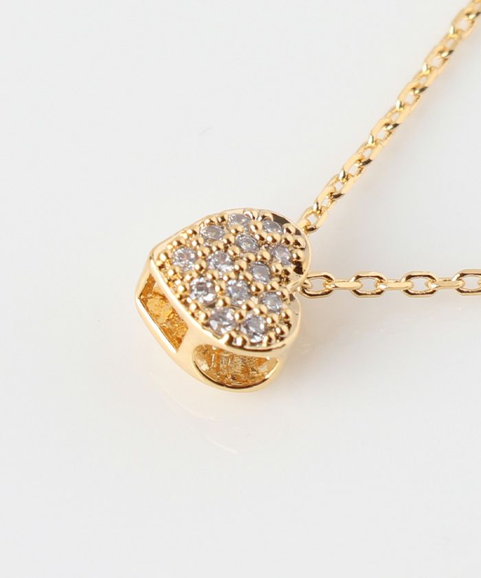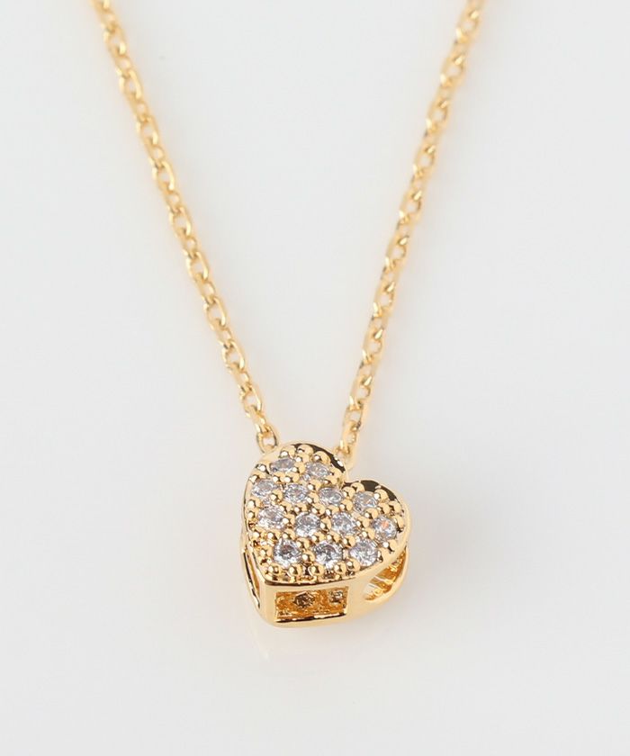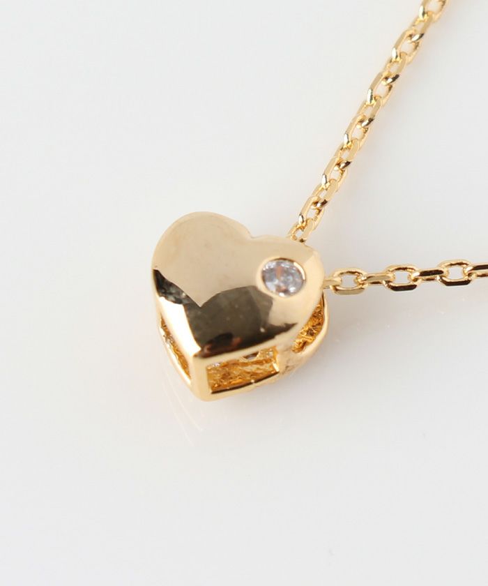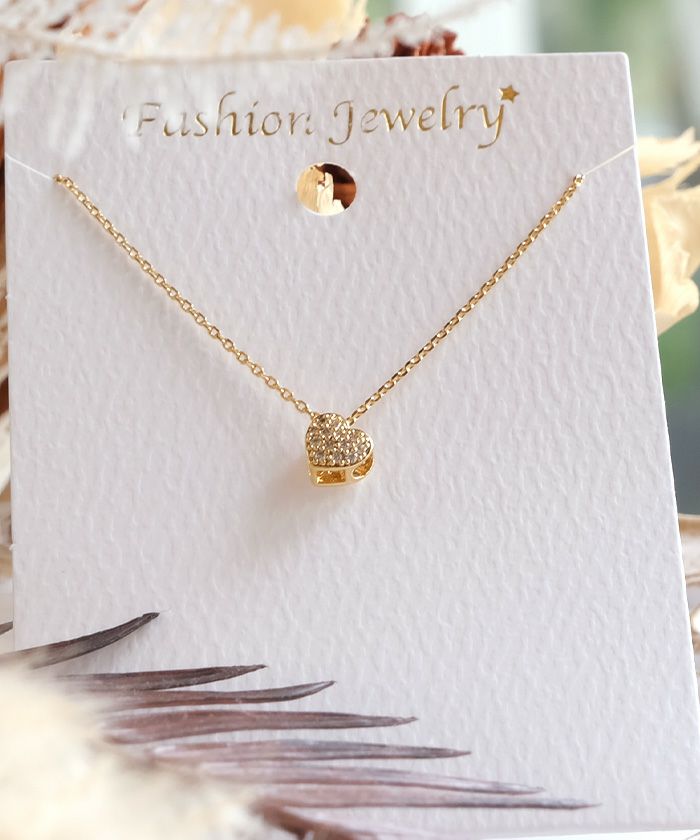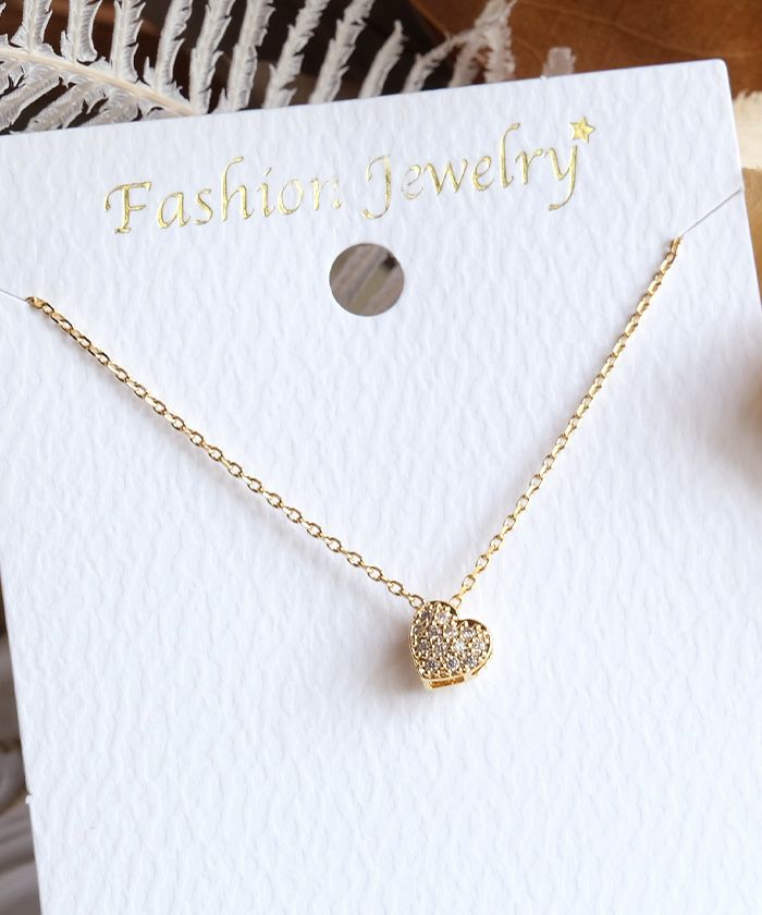 繊細なチェーンの先に輝く、可憐なハート型ビジューが特徴のネックレス。