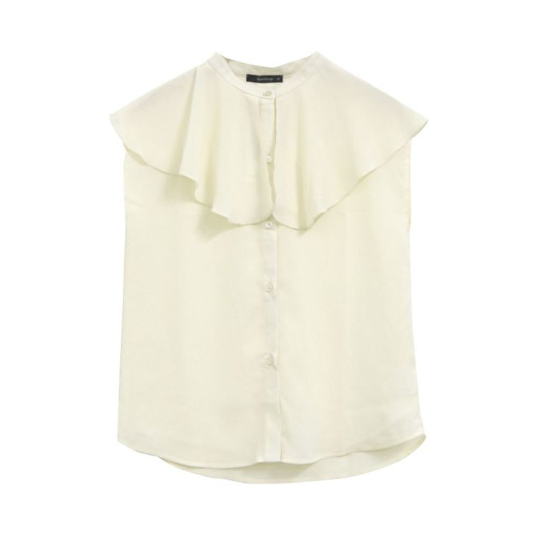 • 大きめなフリルで顔周り華やか。フリル襟ノースリーブブラウス