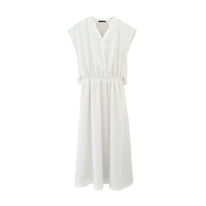 クラシカルな雰囲気の上品ワンピはスキッパーデザインで抜け感を出して。