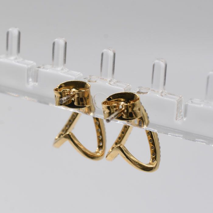 • 女性らしい耳元を美しく演出してくれる逆V字ビジューピアス