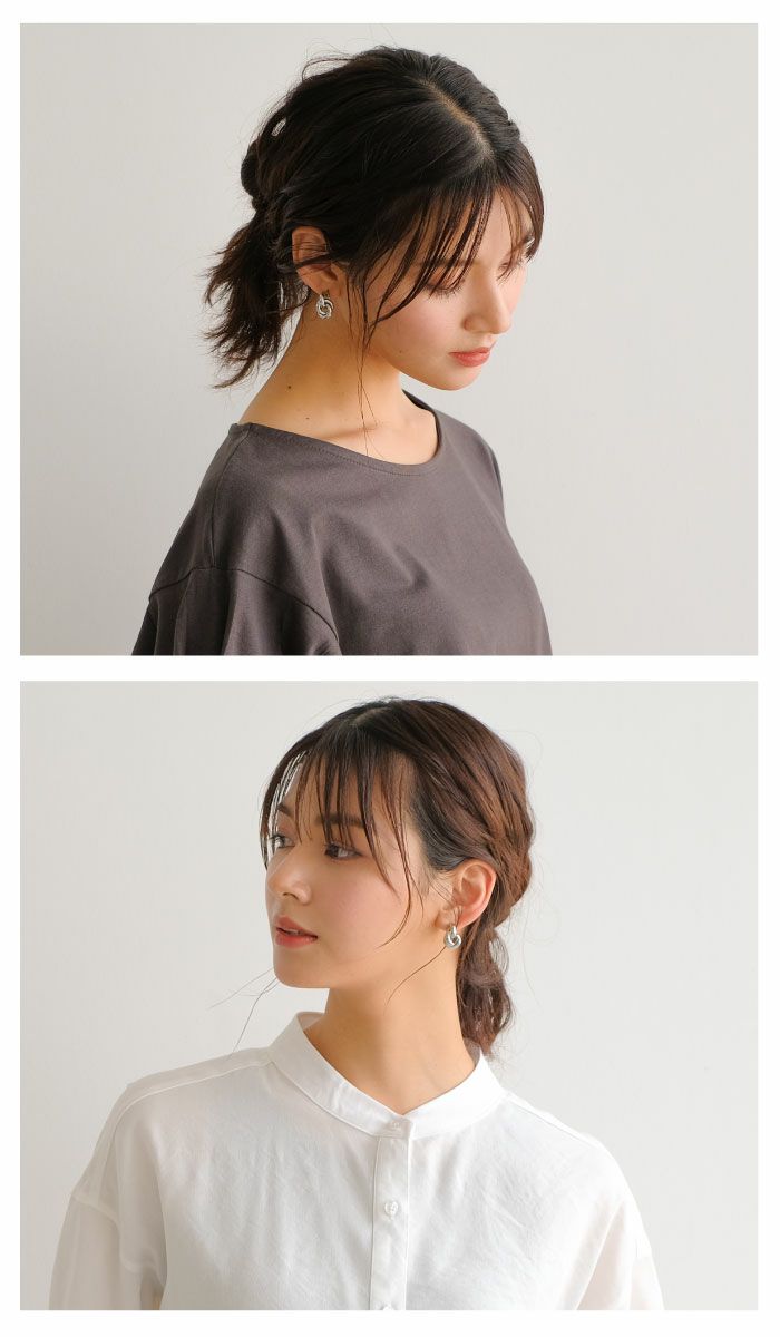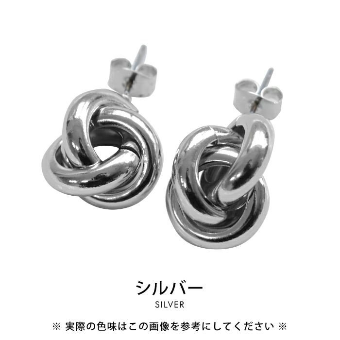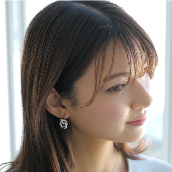 紐を結んだようなデザインが立体的になったピアス。 小ぶりながらもしっかりとした存在感。 シンプルながら上品さと可愛らしさを併せ持つデザインなのでどんなコーデとも相性抜群です。