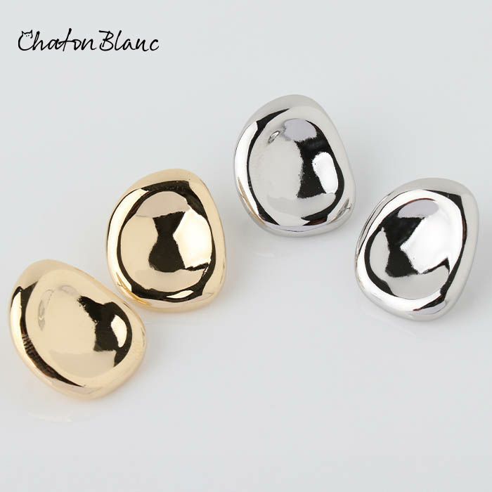 直径約2.5×2.2cmのサイズ感ながら、厚みや曲線のあるプレートが光を柔らかく反射し、ワンポイントながらこなれた華やかさを演出。