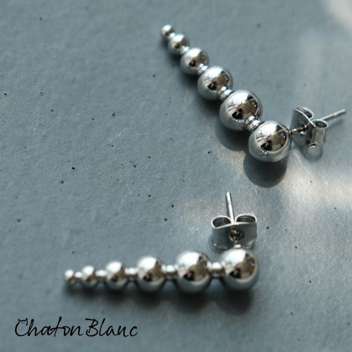 一粒一粒が連なったチェーンを直線的に仕上げており、耳元で揺れたりせず、凛とした印象を与えます。