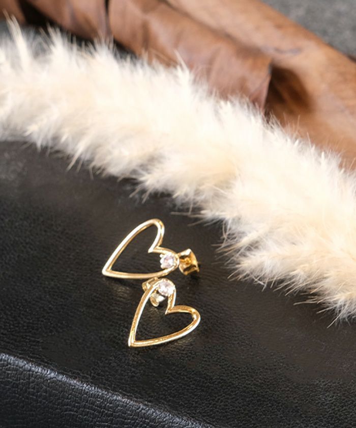 ハートモチーフが控えめに揺れ、フェミニンな雰囲気を演出します。