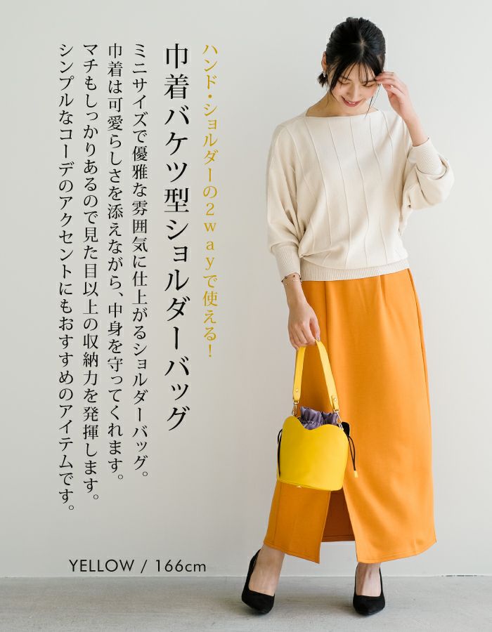 • ハンド・ショルダーの2wayで使える! 巾着バケツ型ショルダーバッグ