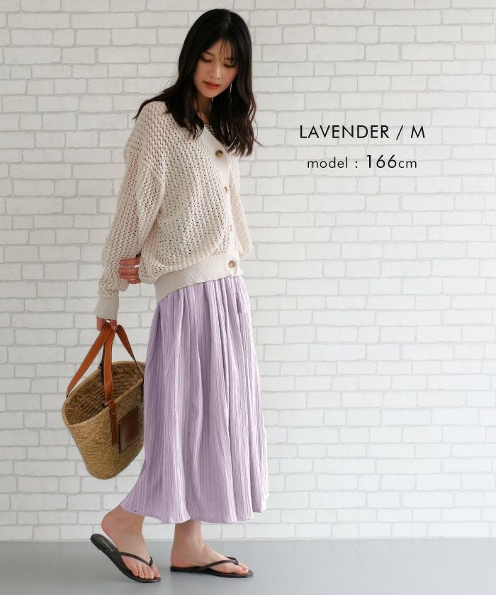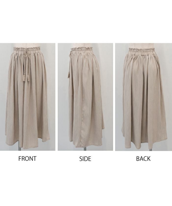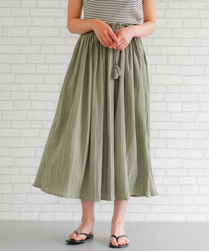• 動く度にふわっと揺れるフェミニンな1枚♪ワッシャー楊柳ギャザーロングスカート