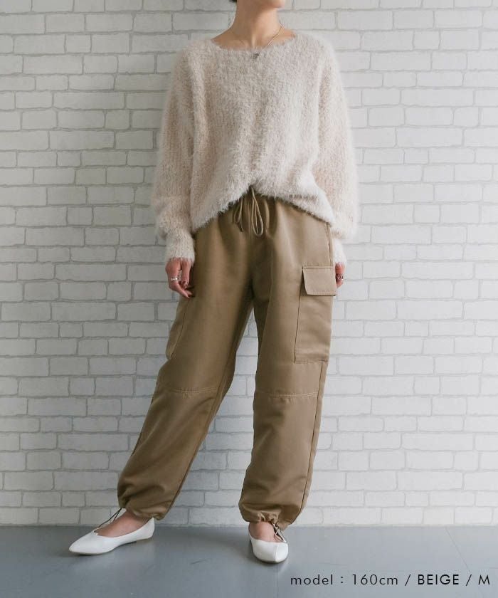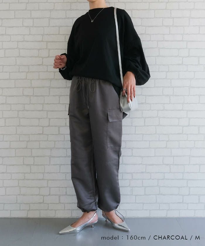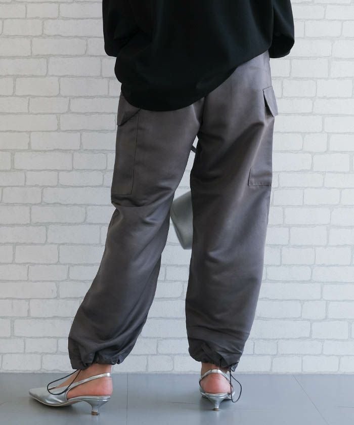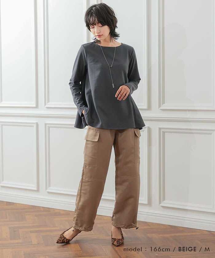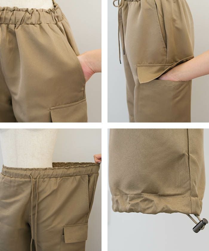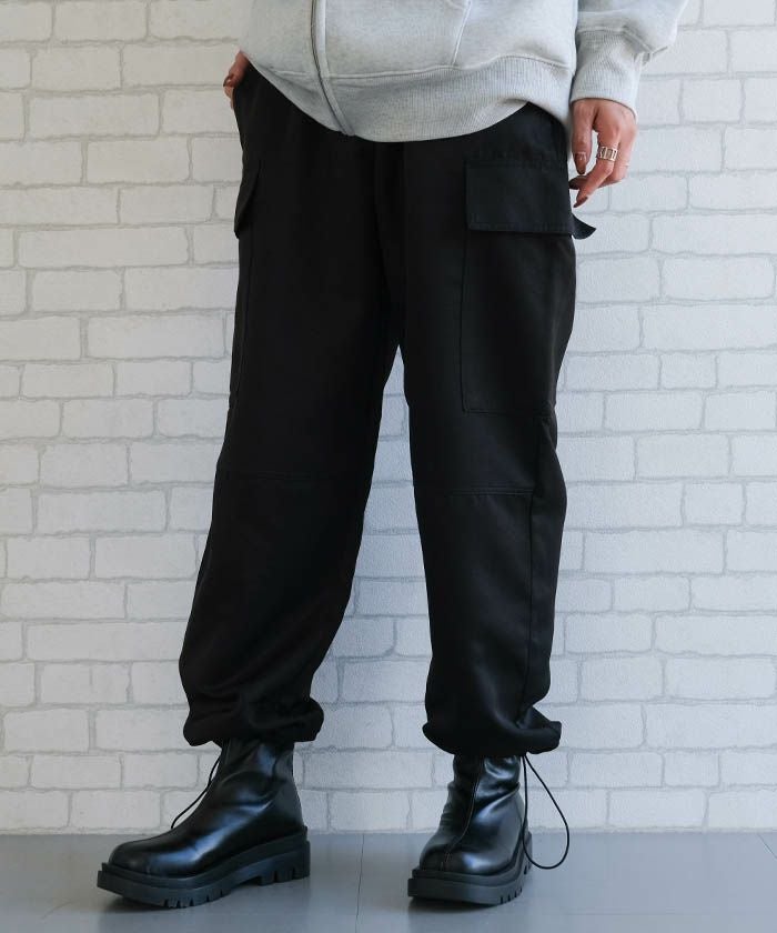 両サイドに施した大きめポケットが特徴的なカーゴパンツ。