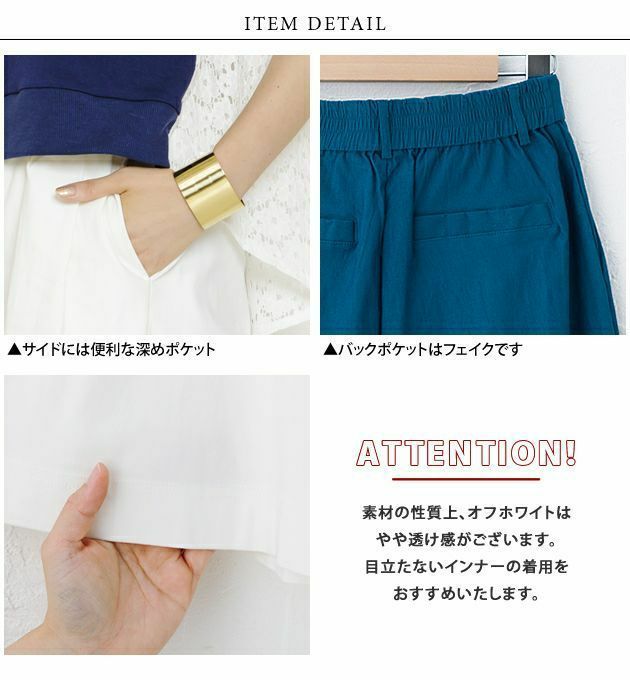 総丈:77cmウエスト:60~80cmヒップ:100~103cm前股上:34cm股下:44cmわたり幅:32cm裾幅38cm