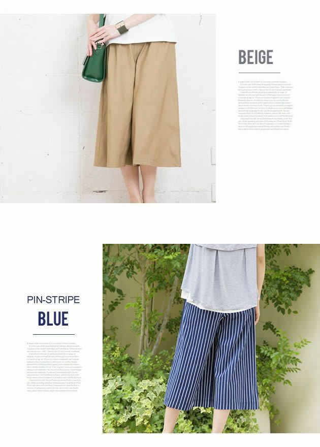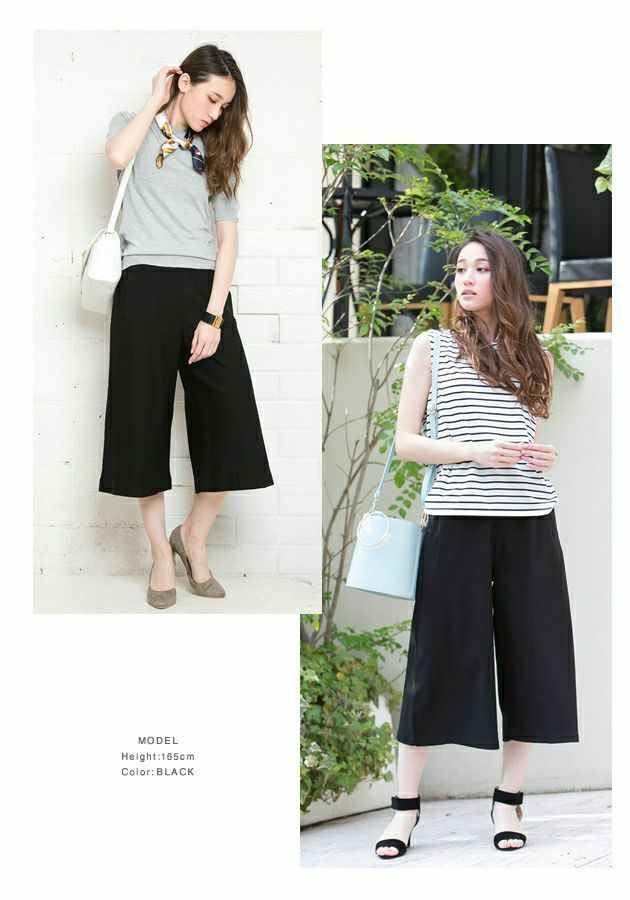 伸縮性が高く、ウエストゴムで楽な穿き心地のガウチョです。