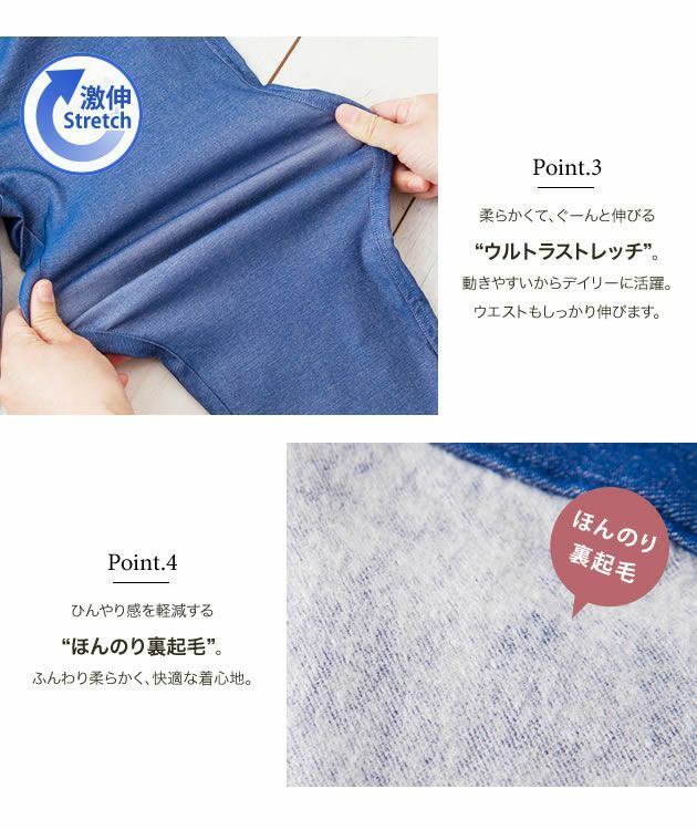 柔らかく穿き心地の良い生地。裏面はほんのり起毛しています。