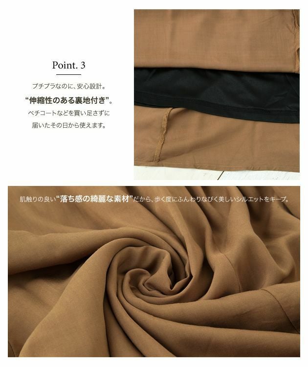スカートの長さと生地の質感が気に入ってます。