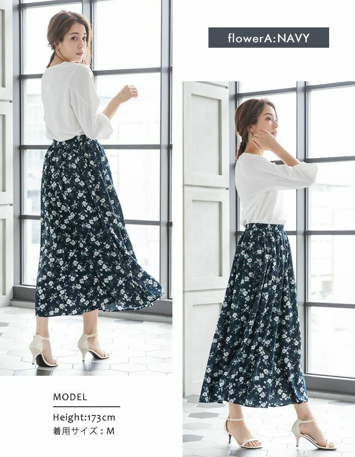 【最終値下げ価格】無地or花柄 マキシ丈ギャザースカート | アクアガレージ aquagarage