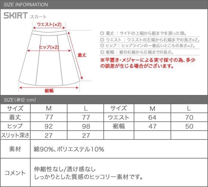 着丈:77cm ウエスト:70cm ヒップ:98cm 裾幅:50cm スリット深さ:27cm