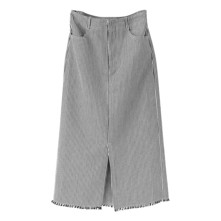 • ストライプが爽やかなヒッコリー素材のタイトスカートで、普段の装いをアップデート♪