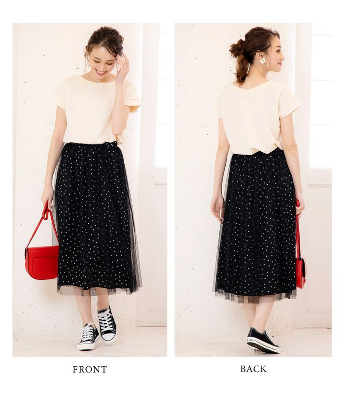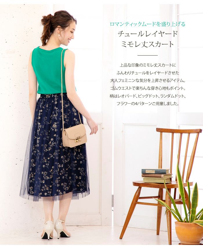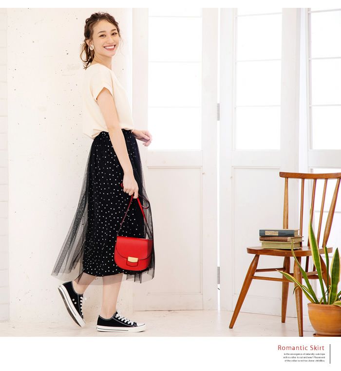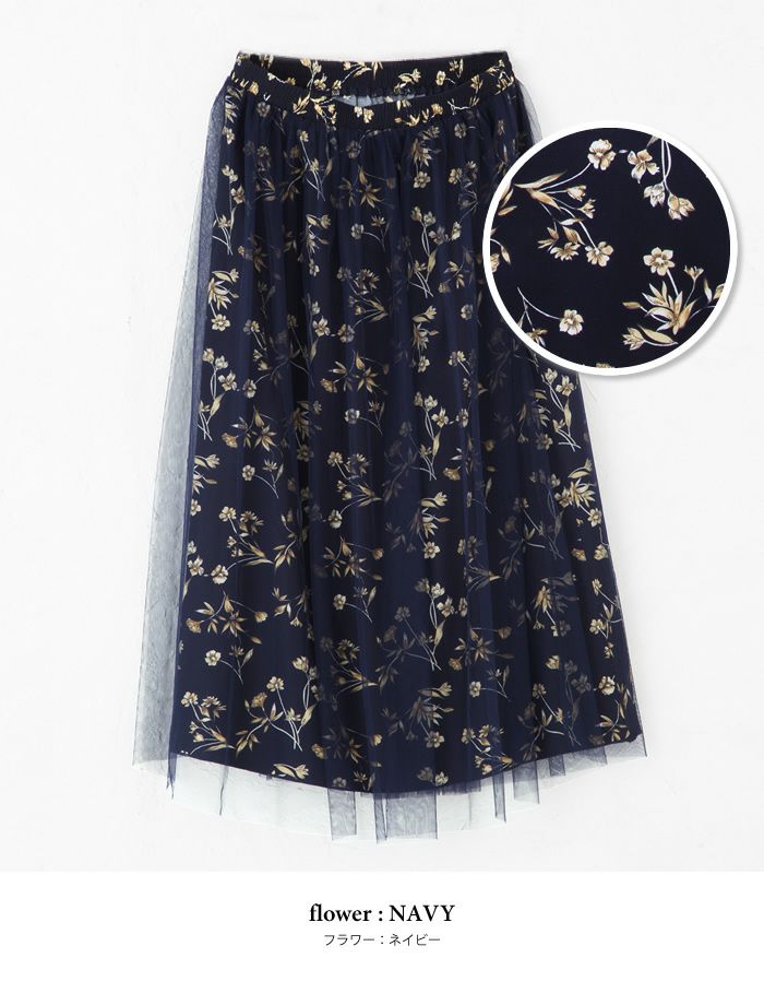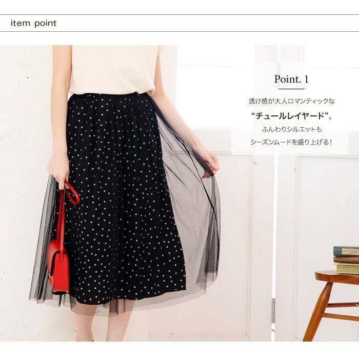 ウエストゴム仕様のチュールレイヤードスカートです。