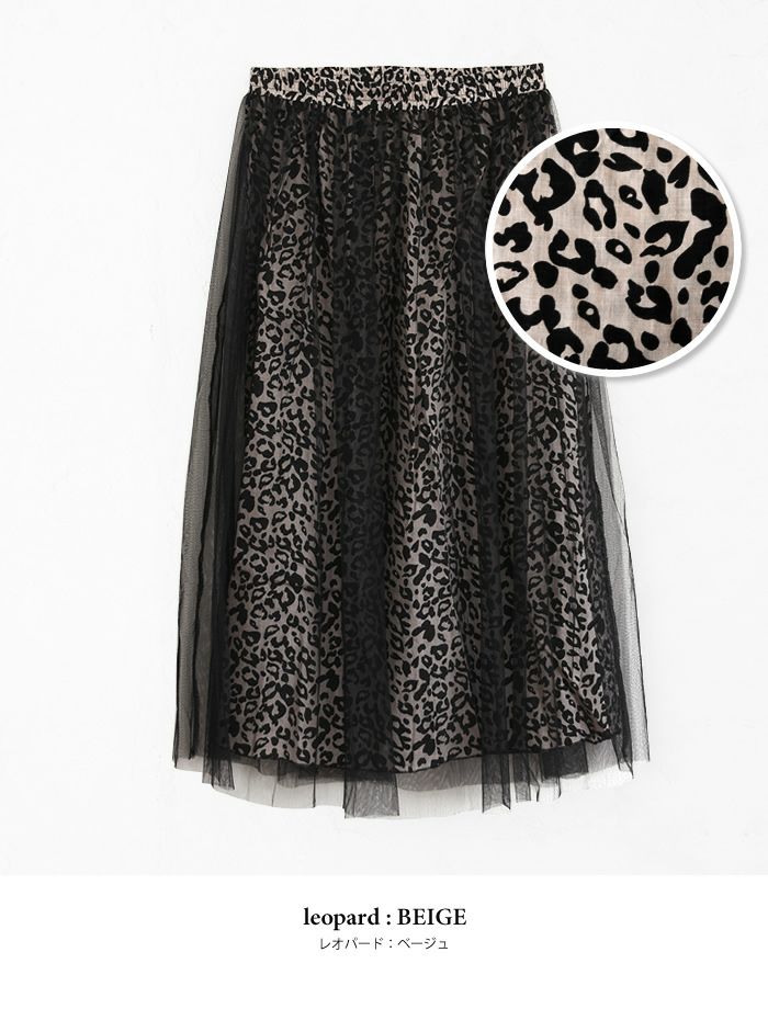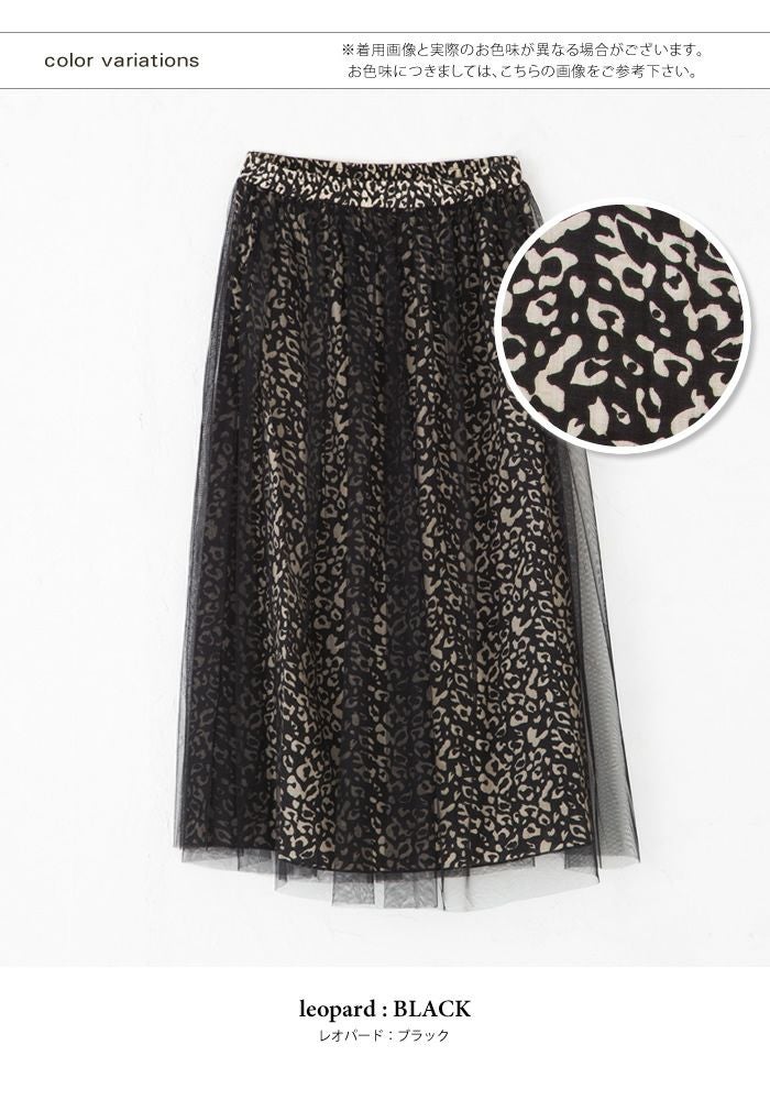 ロングスカート ひざ下 ボトムス 花柄 ヒョウ柄 ひょう柄 豹柄 ドット柄 アニマル アニマル柄 体型カバー 透け感 落ち感 フェミニン 18_01wrsk■