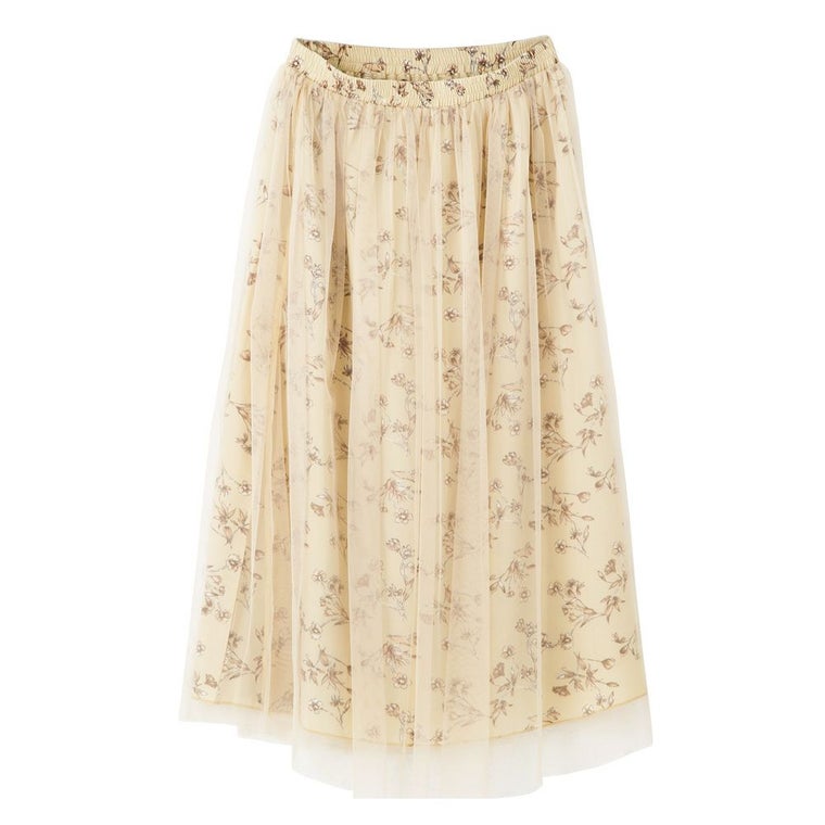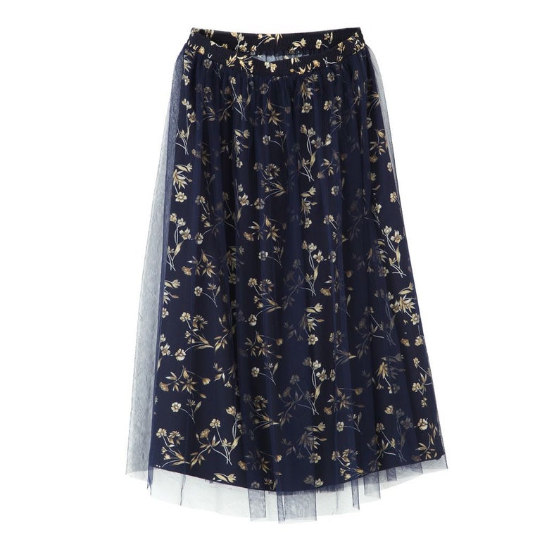 着丈(チュール):80cm 着丈(柄生地):75cm ウエスト:72cm~80cm 裾幅(チュール):132cm 裾幅(柄生地):68cm