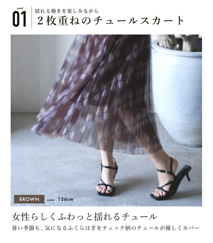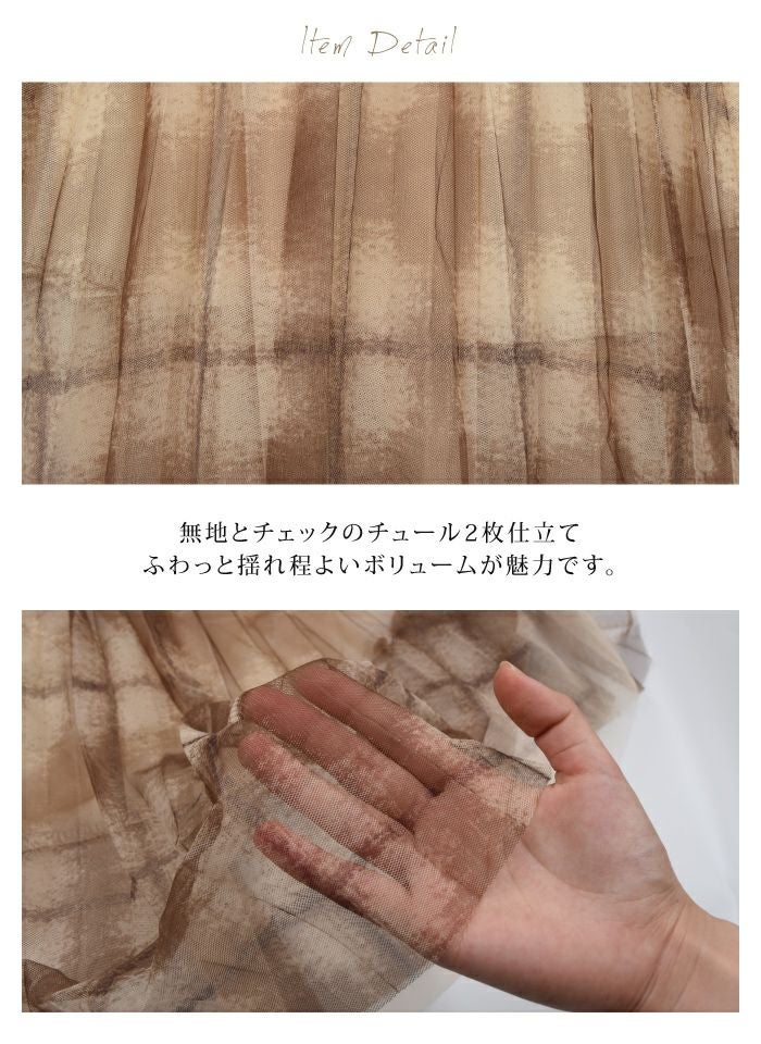 • 無地とチェックのチュール2枚仕立て!チェックチュールスカート。