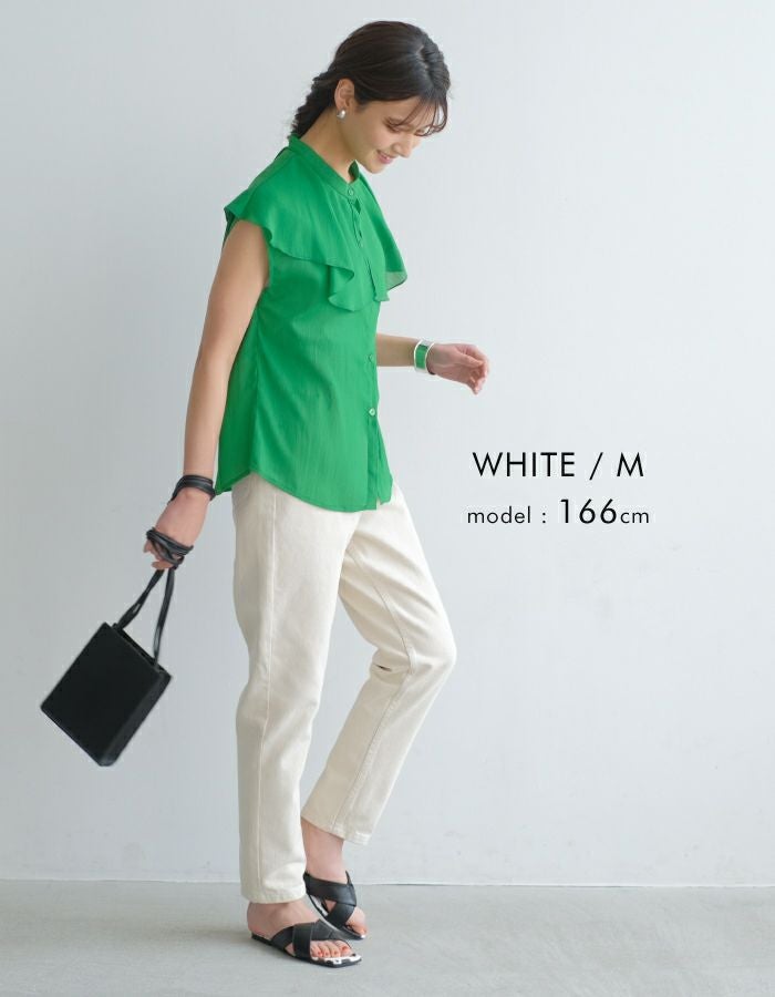 ハイウエストなので気になるお腹周りを気にせず履ける感じが良かった! 生地もしっかりしていて色味も上品な白で たくさん着回しできそうです。