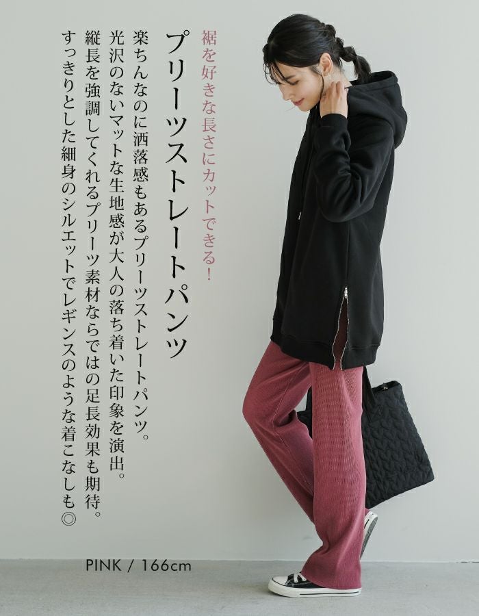 • 動くたびに表情豊かに揺れるプリーツストレートパンツ