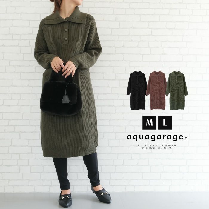 【最終値下げ価格】ネックボタンニットワンピース M L レディース | アクアガレージ aquagarage