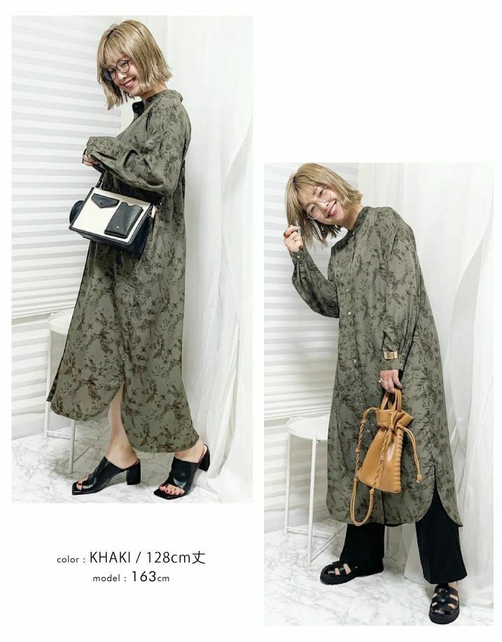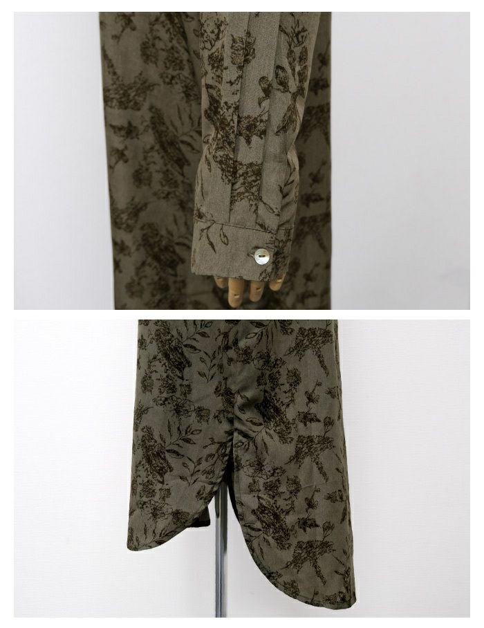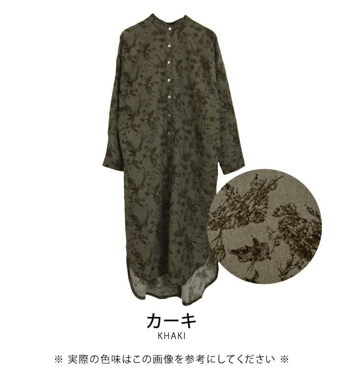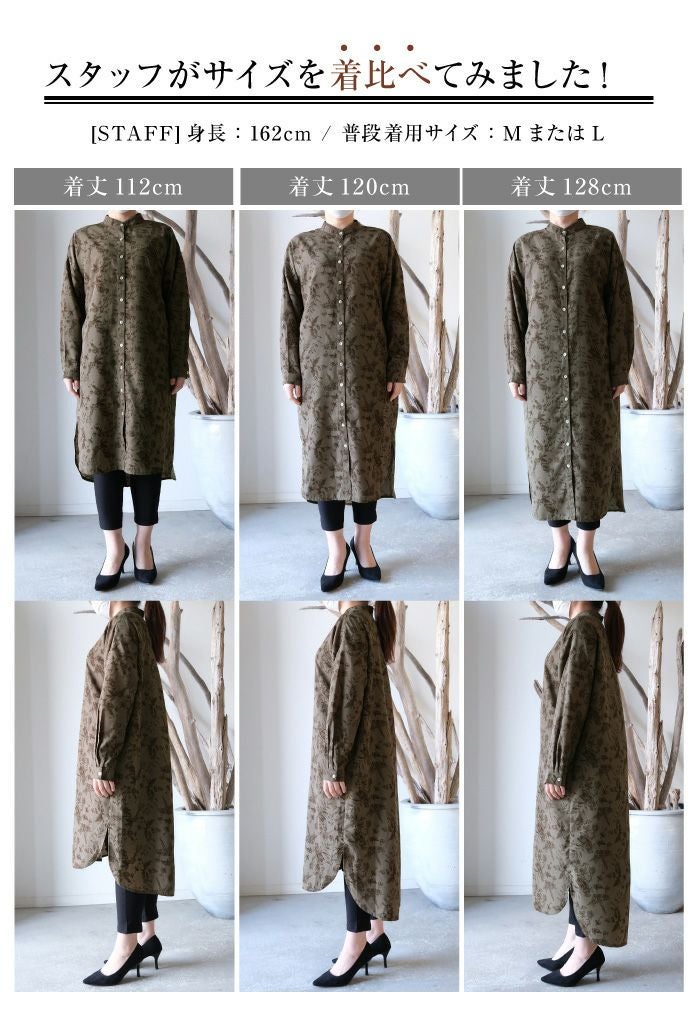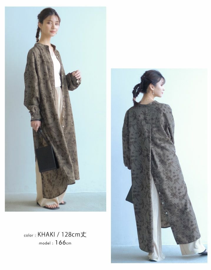 「バックスタイル」でオシャレ度UP! ボタニカル柄バックボタンシャツワンピース。