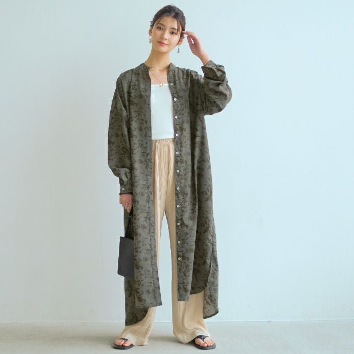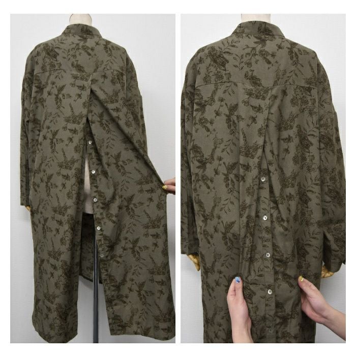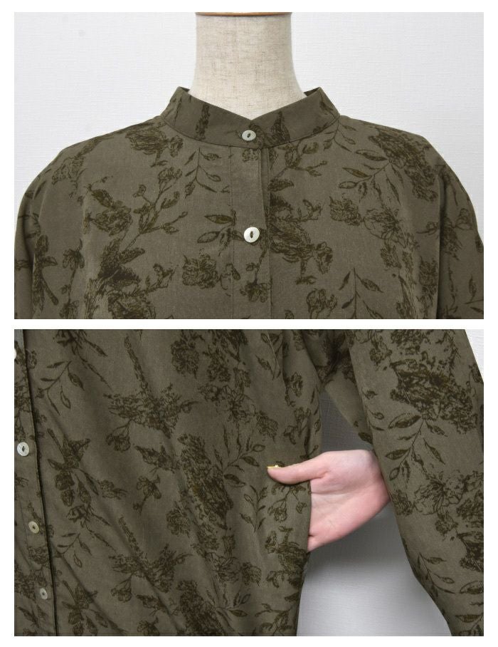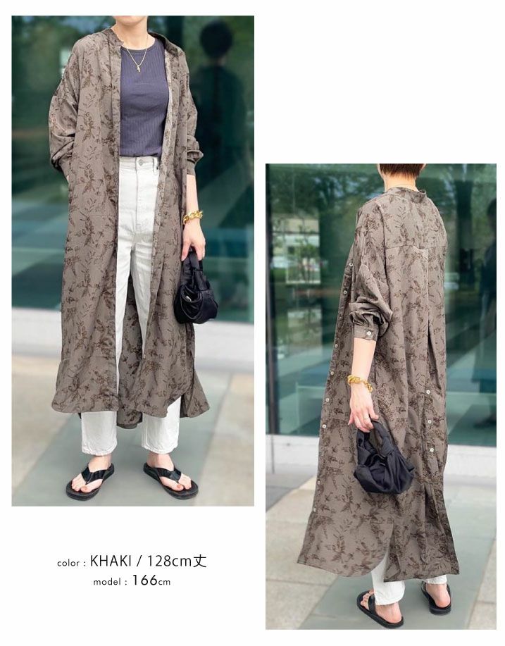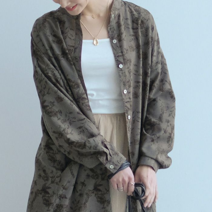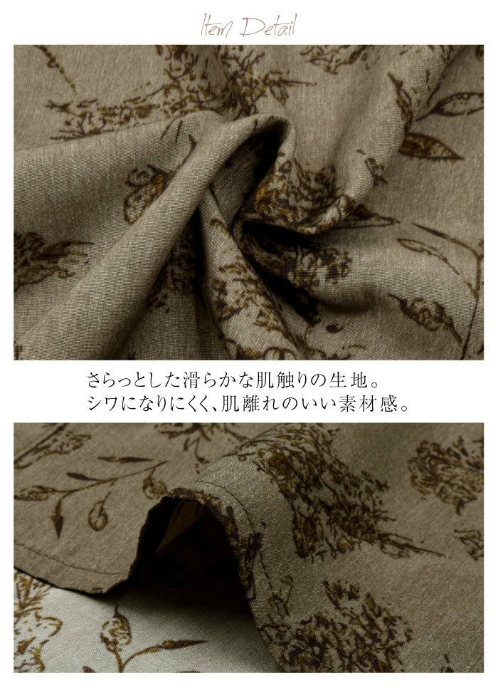 「バックスタイル」でオシャレ度UP! ボタニカル柄バックボタンシャツワンピース。