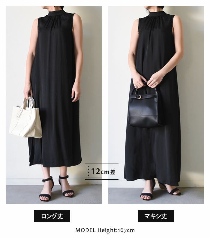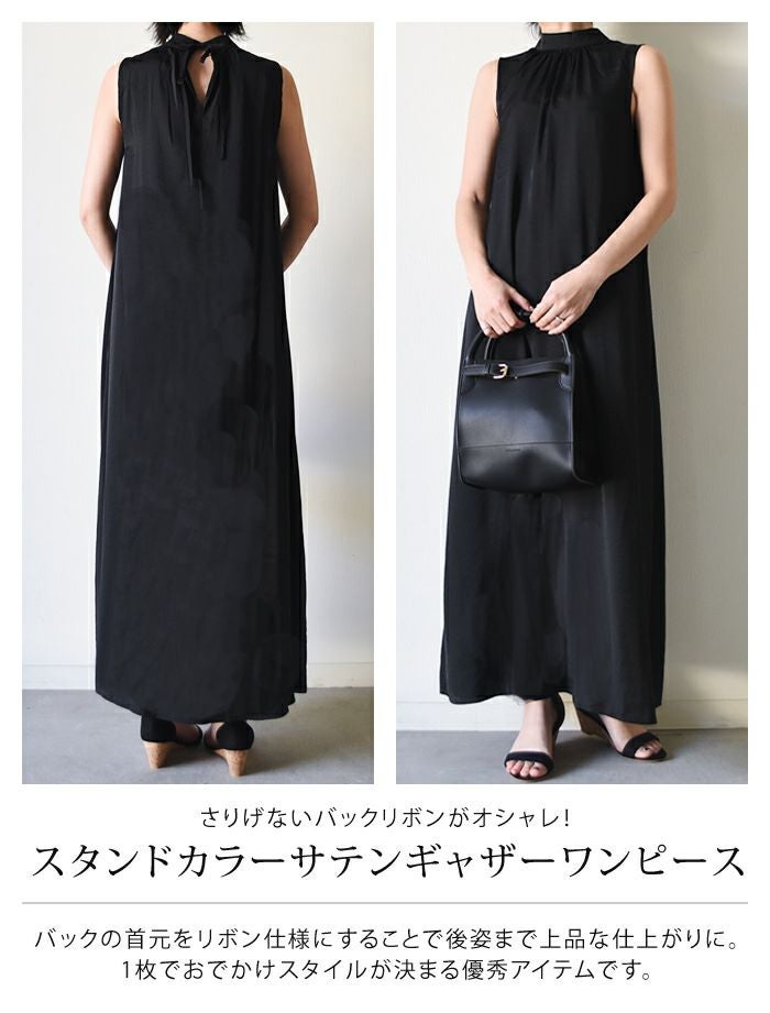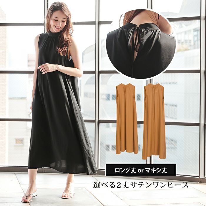 【最終値下げ価格】選べるロングorマキシ スタンドカラーサテンワンピース レディース 春夏 | アクアガレージ aquagarage