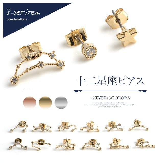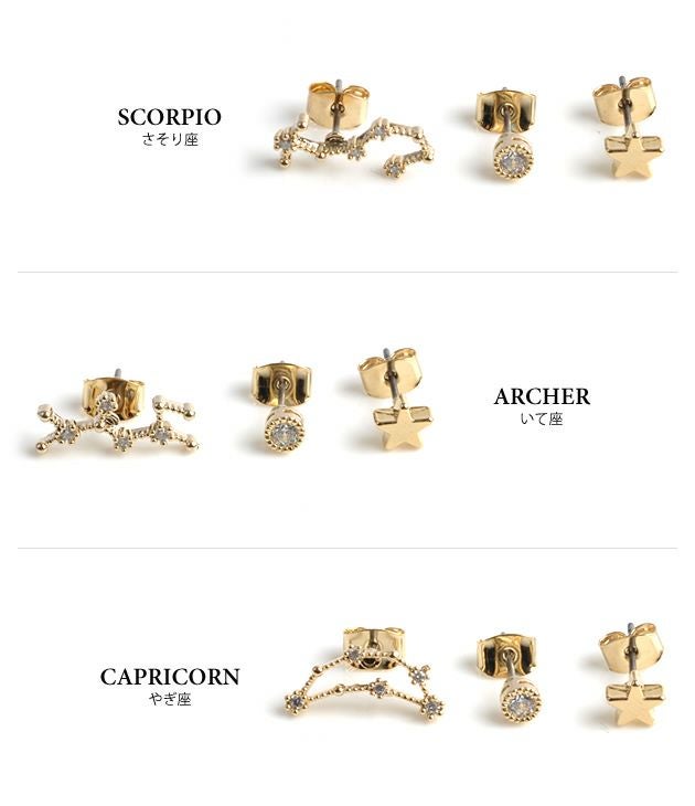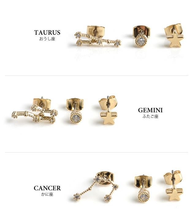 【999円祭り】3SET12星座モチーフピアス | アクアガレージ aquagarage