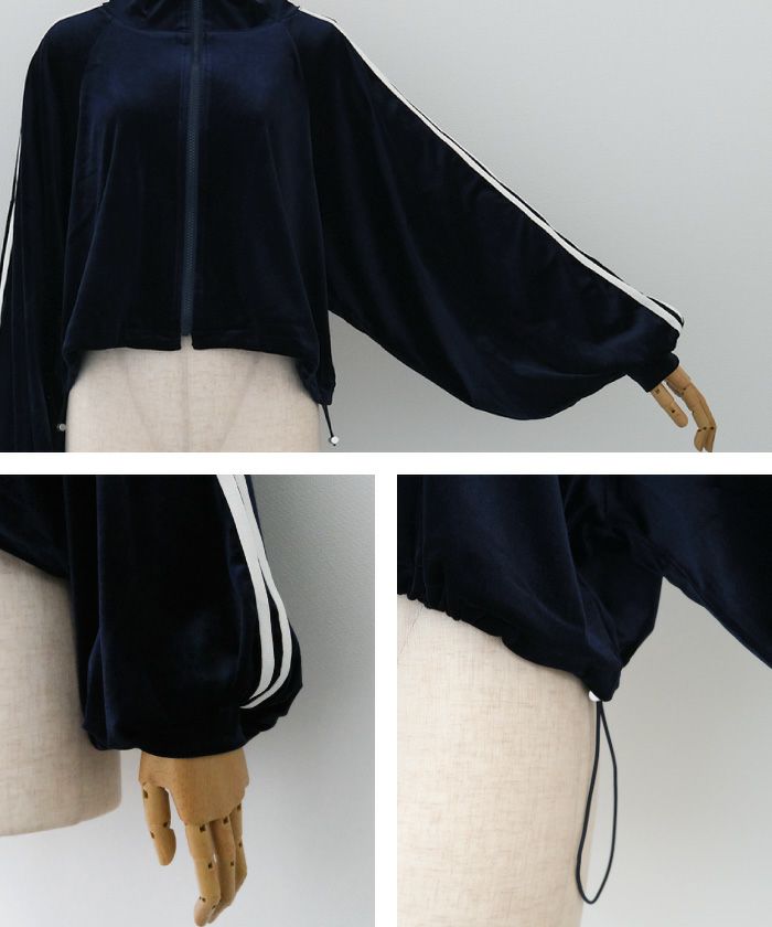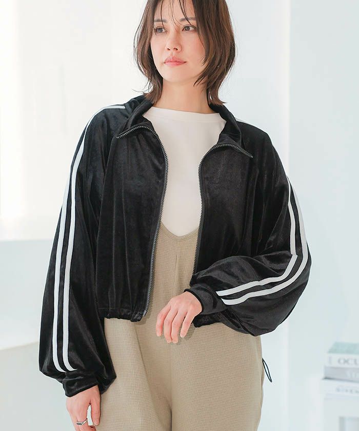 【最終値下げ価格】シャイニーベロア裾ドロストショート丈トラックジャケット 春 夏 秋 冬 M レディース | | アクアガレージ aquagarage