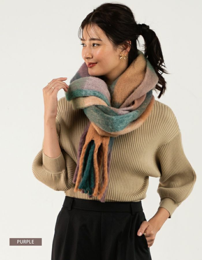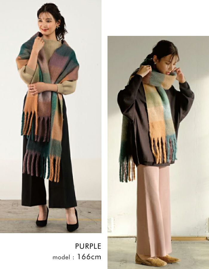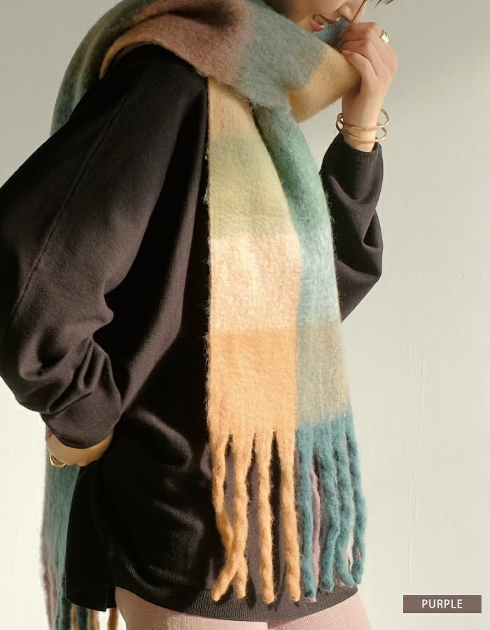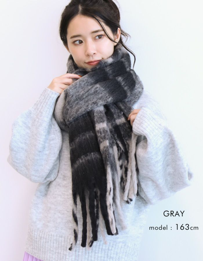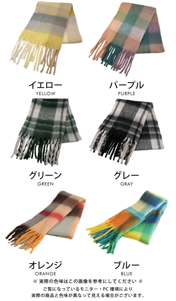 【最終値下げ価格】太フリンジチェック柄マフラー レディース ストール | アクアガレージ aquagarage