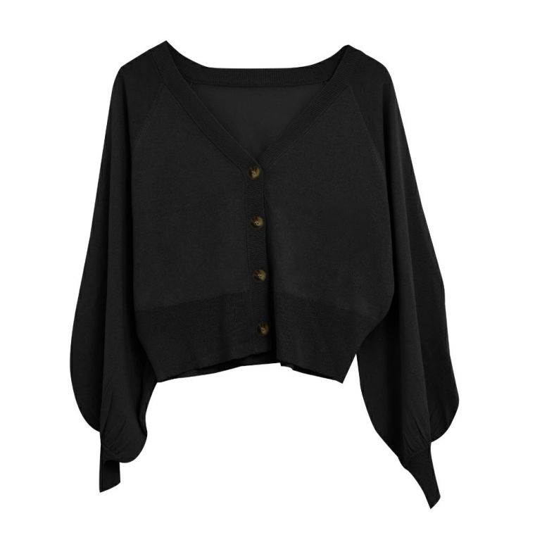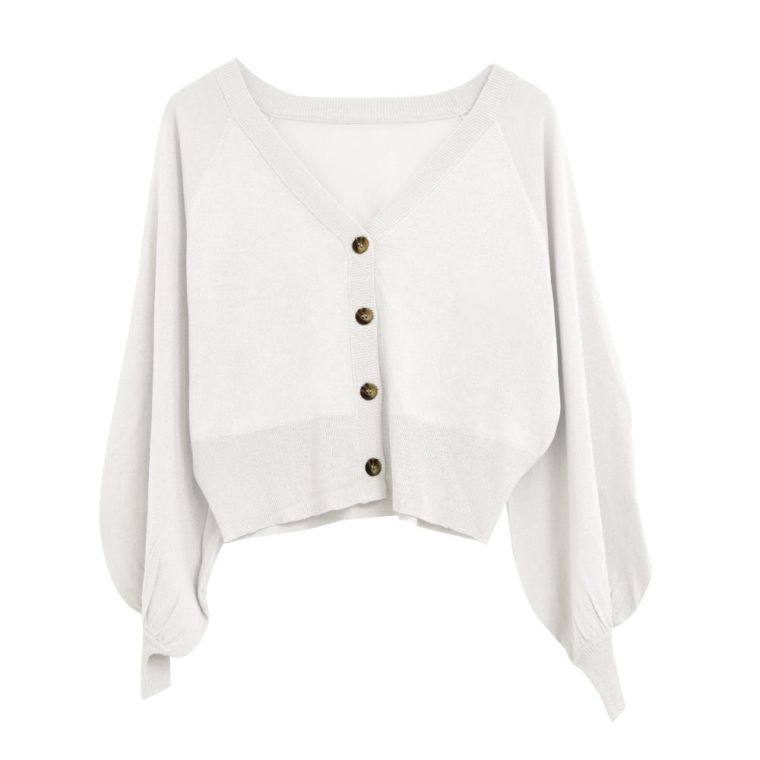 ほのかにきらめくシャイニー感が魅力のシアー生地ニットカーディガン。 コーデや気分で雰囲気を変えられる前後2way仕様なのが嬉しい! Vネック、短めの着丈ですっきり、袖はぽわんとさせメリハリも◎