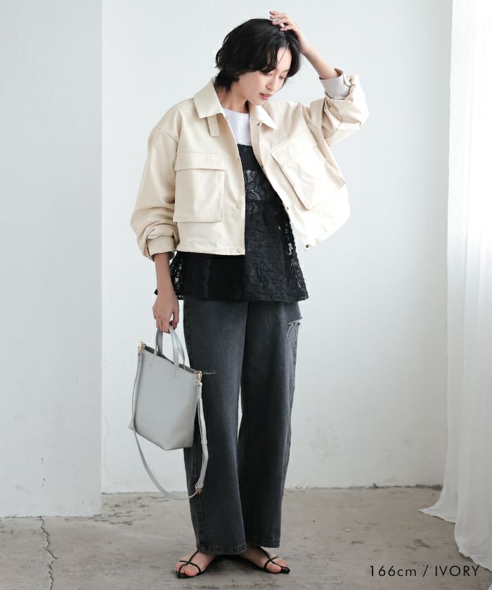 • さっと羽織るだけで上品なコーデになる立体ポケットショートブルゾン