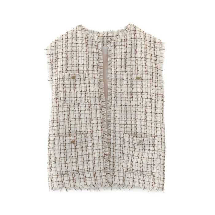 高見えするツイード素材がこなれた印象のフリンジベスト。
