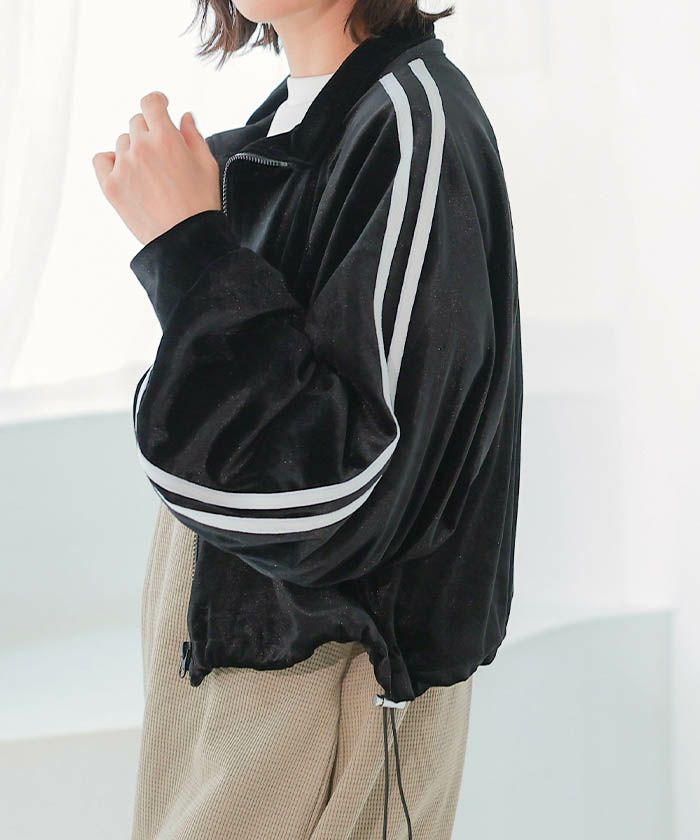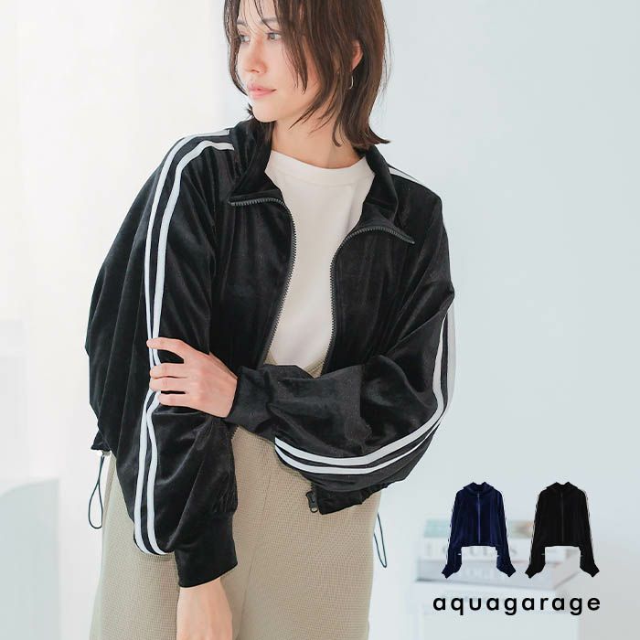 • 【最終値下げ価格】シャイニーベロア裾ドロストショート丈トラックジャケット 春 夏 秋 冬 M レディース | | アクアガレージ aquagarage