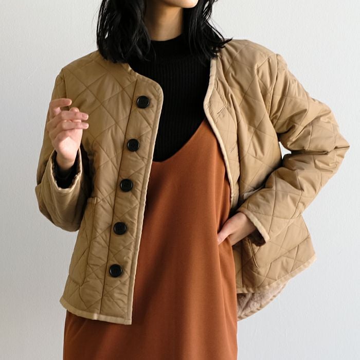 • 滑らかな柔らかさに包まれる!裏ファーショート丈キルティングジャケット