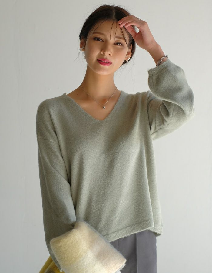 【最終値下げ価格】ボリューム袖Vネックニットトップス M L | アクアガレージ aquagarage